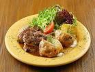 En una fuente de horno se pone la carne con la sal y la pimienta. Con el horno ya precalentado y a una temperatura de 225º, se mete la carne durante 10 minutos.