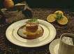 Decorar cada triangulo con una hoja de menta confitada y algunas violetas confitadas, pegando con el baño puesto en una boquilla. (se puede guardar envolviendo cada porción en celofán, en un lugar fresco).