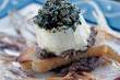 Un segundo antes de llevar a la mesa o servir, colocaremos en cada plato una galleta de hojaldre, sobre esta la estrella de mousse de chocolate blanco, por un costado salsearemos con la mermelada de ruibarbo que podemos diluir con algún tipo de alcohol (si se desea) sino agua, y pondremos a un costado las frambuesas mezcladas con ruibarbo en conserva. Se puede terminar el plato con unas hojas frescas de menta y decorar con hojuelas de oro (láminas de oro comestibles) o yibré (purpurina) dorado comestible.
