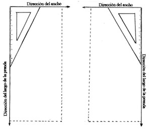 E n esta parte se deja un margen mayor, para poder marcar la amplitud lateral que pueda llevar la falda, o el cruce de la vista, en caso de tratarse de la camisa. Lo importante, es que la raya horizontal y la vertical, formen un ángulo recto.