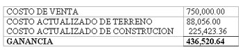 La utilidad contable derivada de la venta de inmuebles se determina de la misma manera que lo explicado en el Clase anterior es decir, sí el valor monetario del activo es > que la depreciación acumulada y ésta diferencia es < al precio de venta o enajenación el producto será utilidad contable.