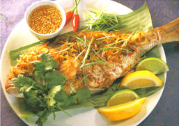 En cuanto a los pescados, en el Vietnam se come una variedad similar a lo que aquí conocemos como carpa y sobre todo la anguila, que es la especialidad de toda la zona del Sudeste Asiático, pero también otros peces y animales acuáticos, tales como los calamares y camarones que son fundamentales para la dieta de los vietnamitas y se consiguen en muchas de sus recetas, sobre todo los camarones secos y triturados que se usan como condimento.