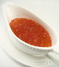 En un tazón pequeño, remoje los copos de pimiento rojo copos en el vinagre por 10 o 15 minutos. En otro tazón, combine la salsa de pescado, jugo de limón, ajo y azúcar. Agregue y remueva 1½ tazas de agua hirviendo la mezcla de pimienta-vinagre y agregue la salsa. Remueva hasta que se disuelva el azúcar. Déjelo enfriar. Sirva a temperatura ambiente. Almacene en frasco de vidrio esterilizado en la nevera durante hasta 30 días.