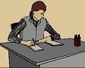 servir. Miro alrededor. Quizás la secretaria tenga algo. Su sitio está justo