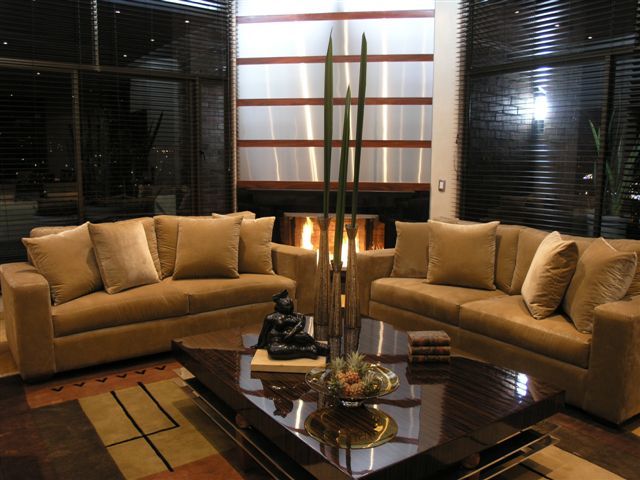 5) Sofás en presentaciones “mullidas”, de mucho confort pero en líneas rectas, con incrustaciones en Madera de ébano y wengue… Telas y cueros suaves, muy planos en sus diseños, mas que todo ricos en texturas.