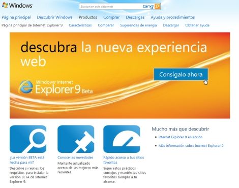 Como decíamos anteriormente, Internet Explorer 9 Beta está disponible para