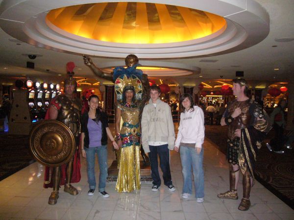 Tomen la pasarela que le deja -después de una gran escalera de mármol que no lleva a ningún sitio y réplicas a tamaño natural del David de Miguel Ángel- en un enorme laberinto de ranuras y tapetes verdes, lleno de centuriones romanos medio desnudos y camareras disfrazadas de Cleopatra.