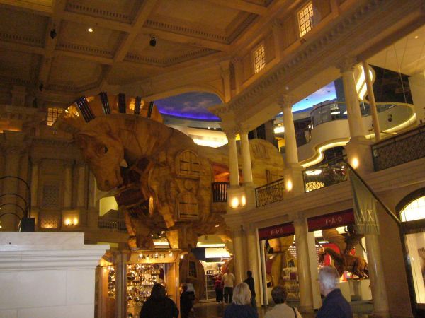 Un impresionante hotel y casino construido como una mezcla de la Roma Imperial y la actual, con profusión de mármol, enormes galerías de tiendas lujosísimas,