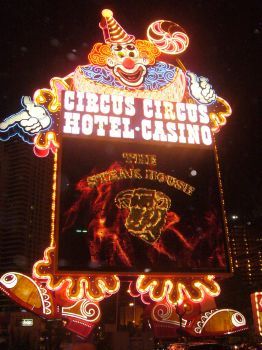 El favorito de las familias con niños, se encuentra en Las Vegas Boulevard esquina Circus Circus Drive, en el que te recibirá un payaso gigante llamado Lucky y una carpa gigante blanca y rosa.