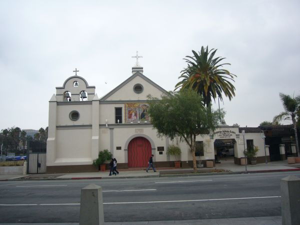 En la siguiente esquina, en Temple Street, si doblamos hacia la derecha, cuesta abajo hacia el Pueblo de Los Angeles, a la izquierda veremos la entrada a la nueva Catedral de Nuestra Señora de los Angeles, obra del arquitecto español Rafael Moneo.