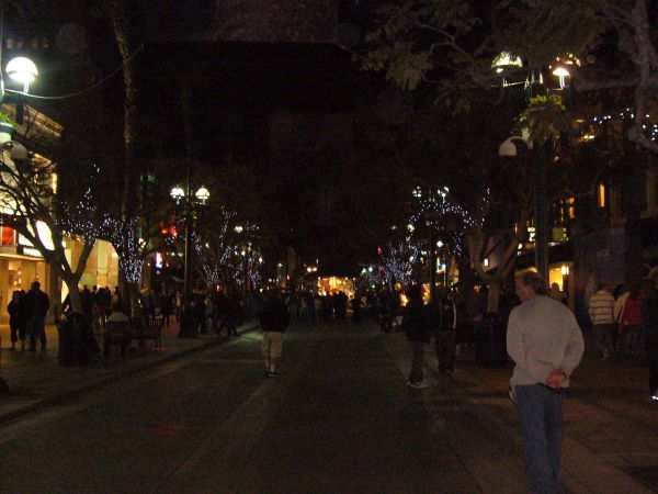 Third Street Promenade, entre Broadway y Wilshire, es un paseo peatonal que une ambas avenidas y la calle más famosa de Santa Monica y la más animada por la noche.