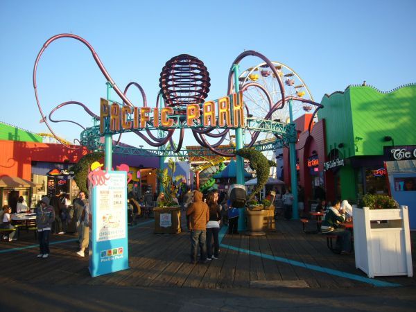 y un pequeño parque de atracciones de los años 20 (el Pacific Park, de entrada gratuita) con el bien restaurado tiovivo que aparecía junto a Paul Newman en la película El golpe, y la única (al menos, así dicen sus propietarios) montaña rusa a energía solar del mundo.