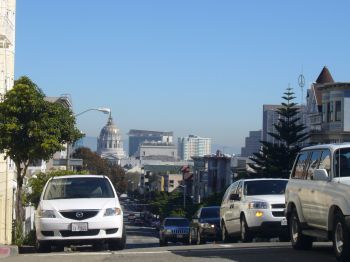 Para tomar la mejor fotografía, con el paisaje urbano de San Francisco perfilado sobre el horizonte como en numerosas tarjetas postales y películas, sitúese en el parque cerca del cruce de las calles Steiner y Hayes.
