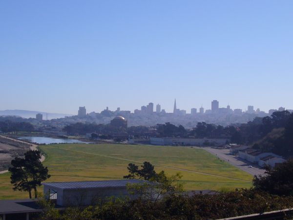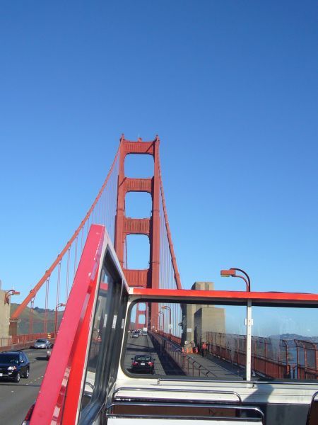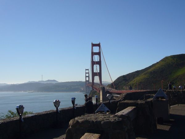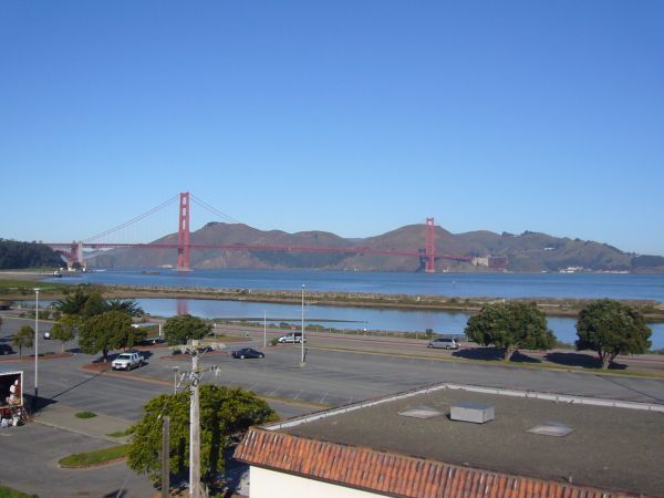 A partir de aquí tienen varias maneras de llegar al Golden Gate Bridge. Pueden bordear el lago hasta Lyon Street y una cuadra más allá, en la esquina con Richardson (que es la calle ancha continuación de Lombard Street), tomar el autobús número 28 que los llevará hasta la plaza situada al sur del puente.