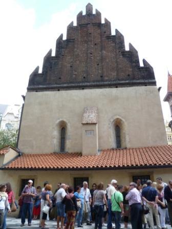 en el sitio de la sinagoga más antigua de Praga (la Vieja Escuela), su estilo es