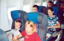 - Sólo se permite que un niño se siente sobre las faldas de un adulto por cada hilera de tres asientos, debido al número limitado de máscaras de oxígeno. Si una pareja de adultos planea volar con sus dos hijos sobre sus regazos (uno sobre cada uno), deberán fichar asientos en diferentes filas.