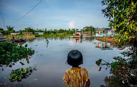 poblado de galeras fluviales y delgados barcos “sampan”, que lleva cargas muy
