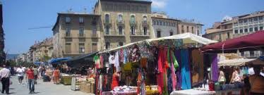 condado medieval. Los mercados que se realizan al aire libre durante la semana